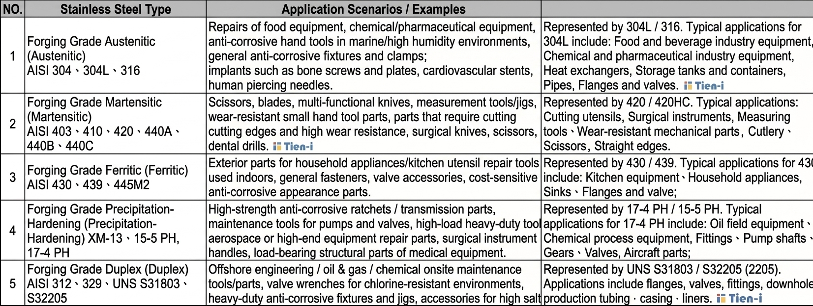 • Martensitic stainless steel for forging